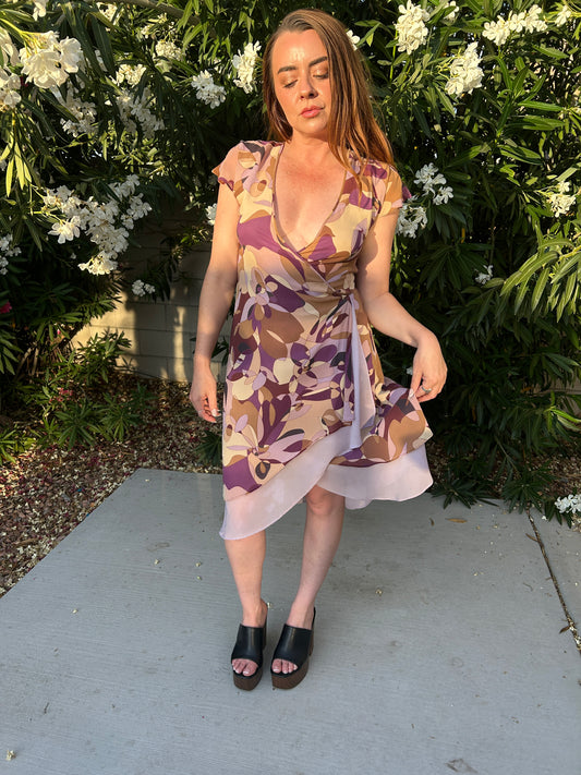 Y2K Silk Geometric Wrap Dress