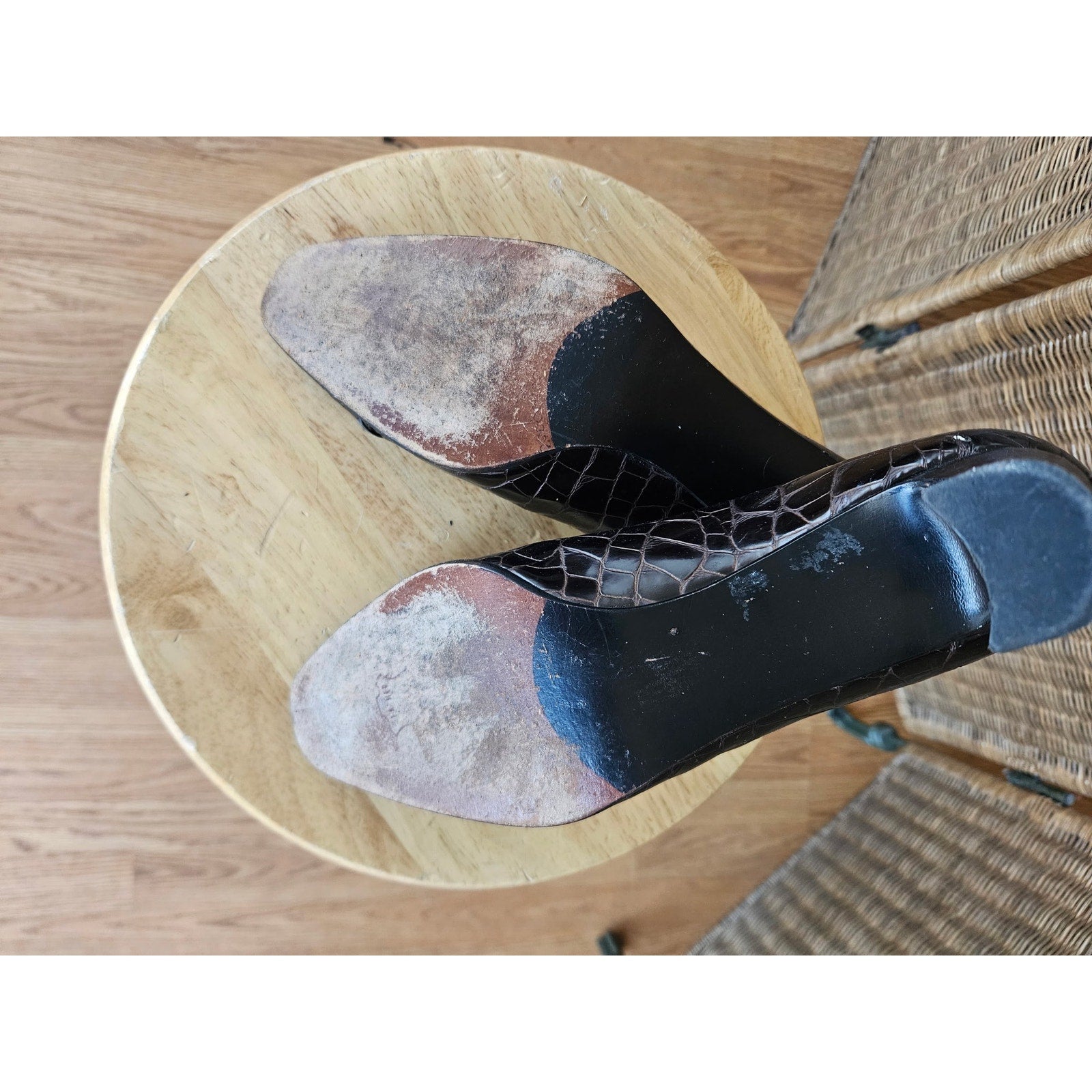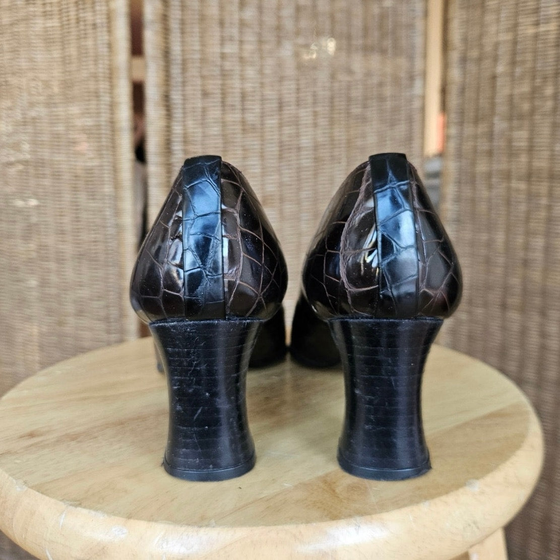 Vintage Stuart Weitzman Brown Croc Embossed Pumps - Size 9.5