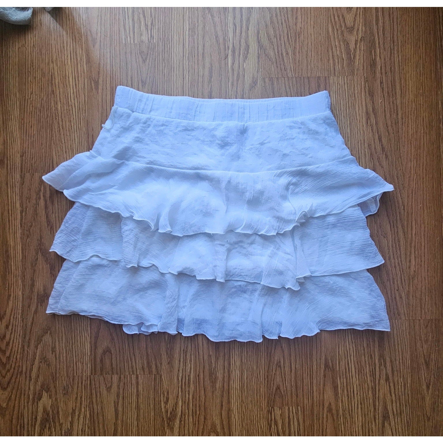 White Tiered Ruffle Mini Skirt, Boho, Festival, Coachella - Size Large